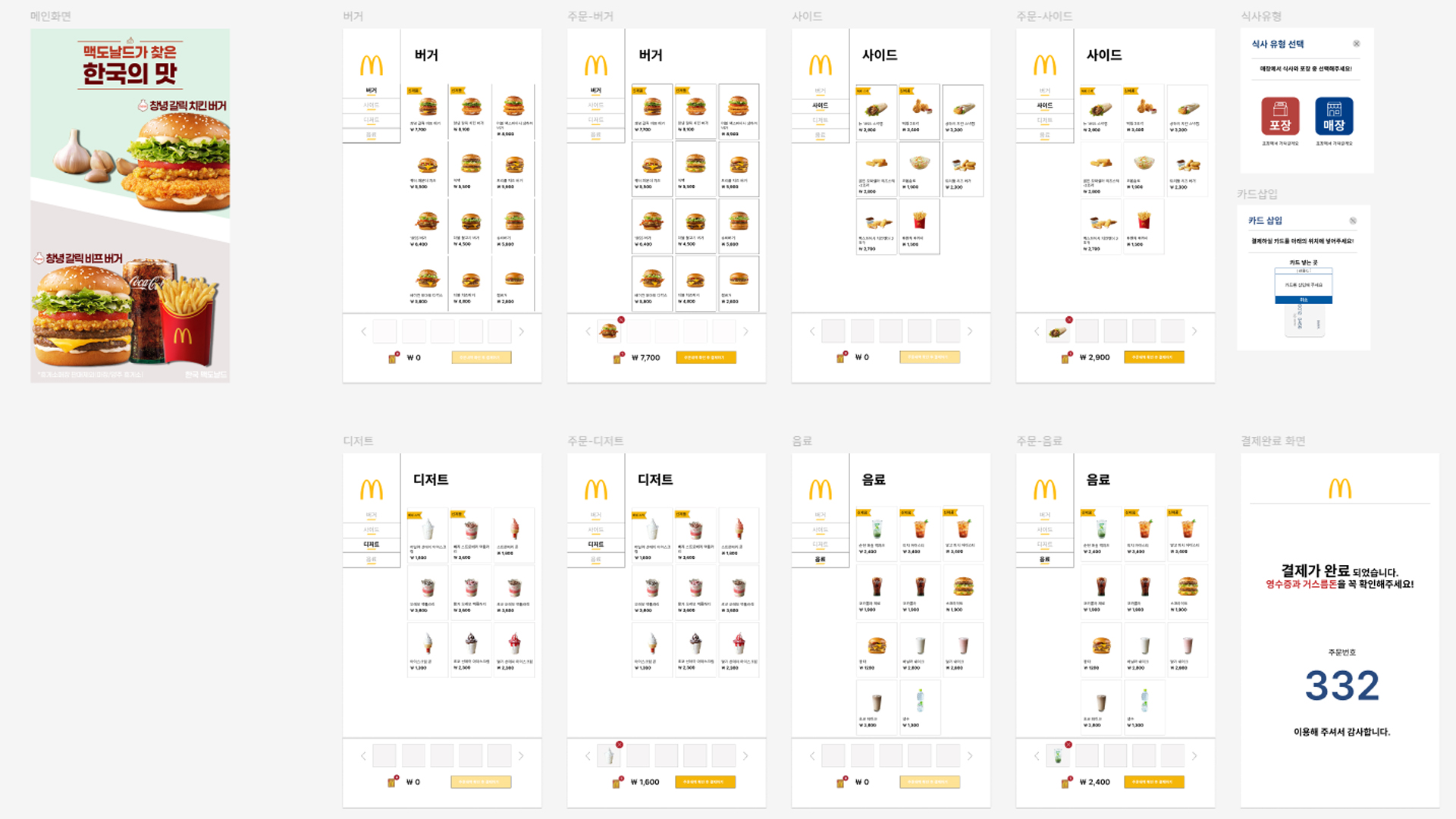 Fingma를 활용해 만든 맥도날드 키오스크다. 버튼을 클릭해 주문부터 결제까지 진행할 수 있어